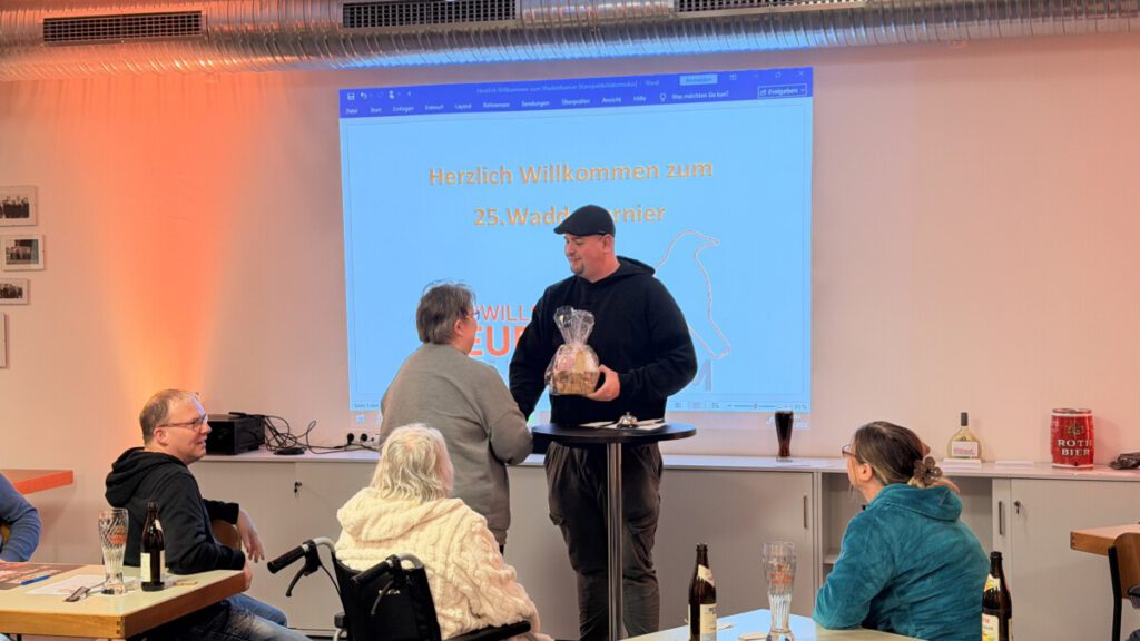 Am Gründonnerstag fand unser 25. Waddelturnier statt. Nach spannenden Runden konnte sich Stefan Mai den 1. Platz sichern und erhielt einen Tankgutschein. Da dieser von seiner eigenen Tankstelle stammt, wird er ihn für einen guten Zweck spenden – eine tolle Geste!